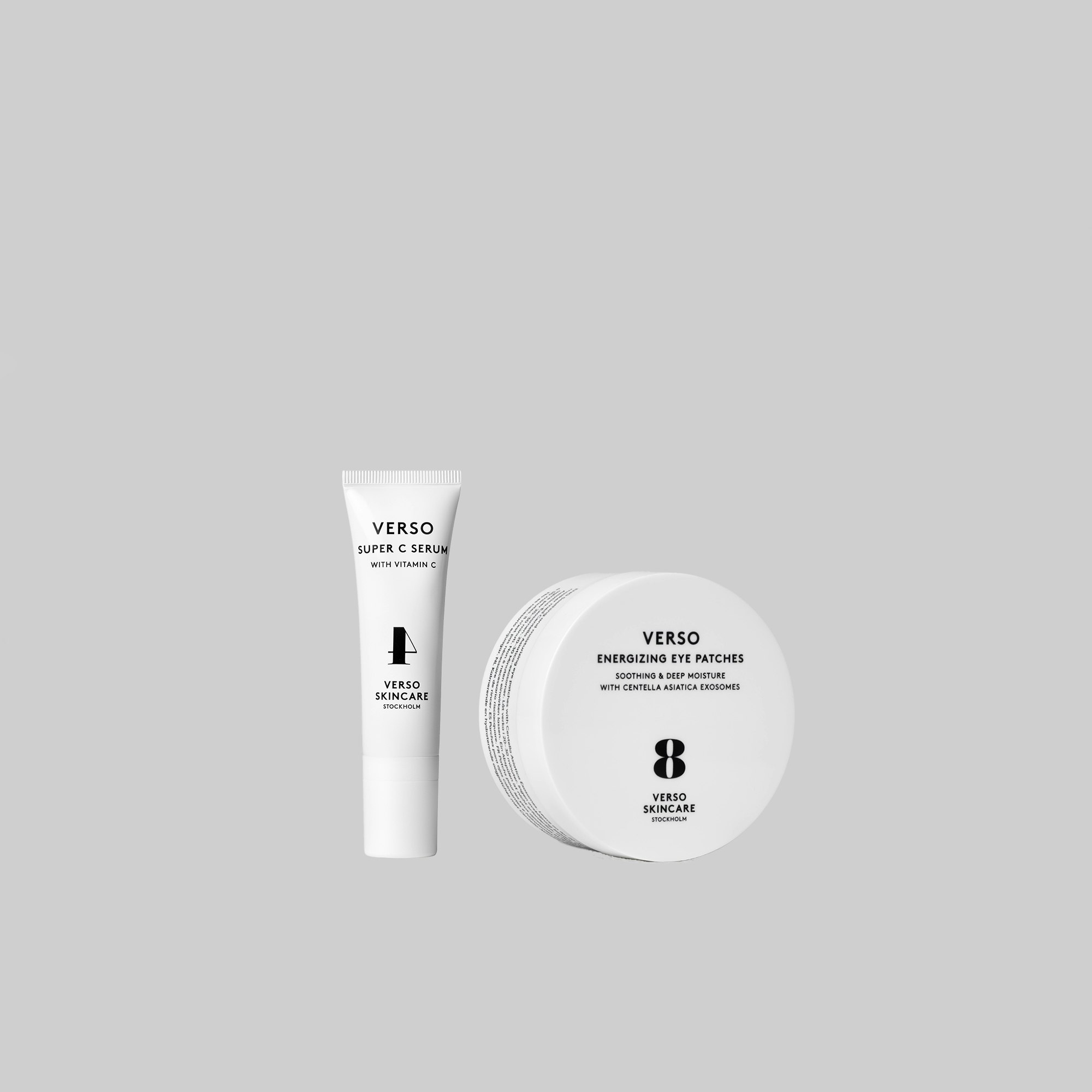 Verso Transition Morning Duo combines Verso Super C Serum and Verso Energizing Eye Patches to support skin radiance and help refresh the delicate eye area.